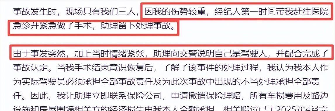 至于顶包这事呀,主要是因为当时她作为主驾驶,伤得最厉害,血一直往外流。为了不耽误治疗,经纪人就赶紧带着她去了医院,留助理在现场处理善后。这事儿一开始挺突然的,助理第一次遇到这样的状况,难免紧张,才会说是她开的车。民警一到场,由于没有酿成大事故,就走了简易程序,认定助理全责。